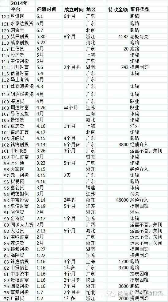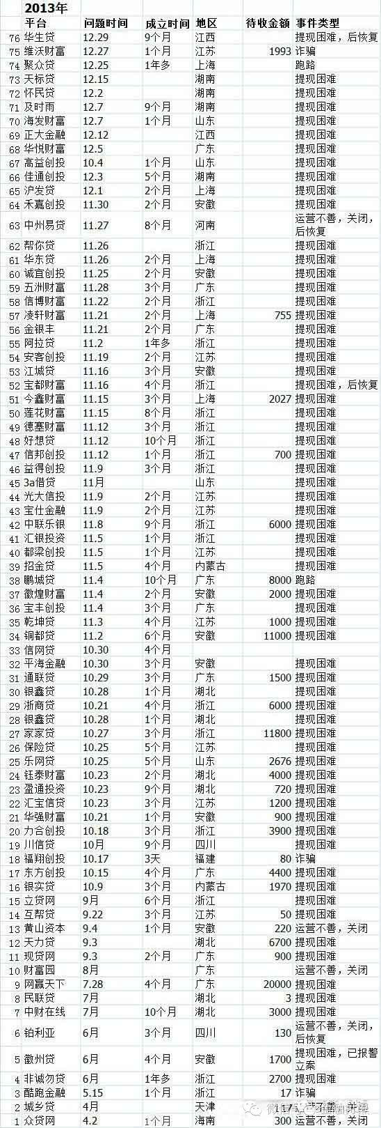 先看2013年至今P2P跑路公司全表,再进行分析: