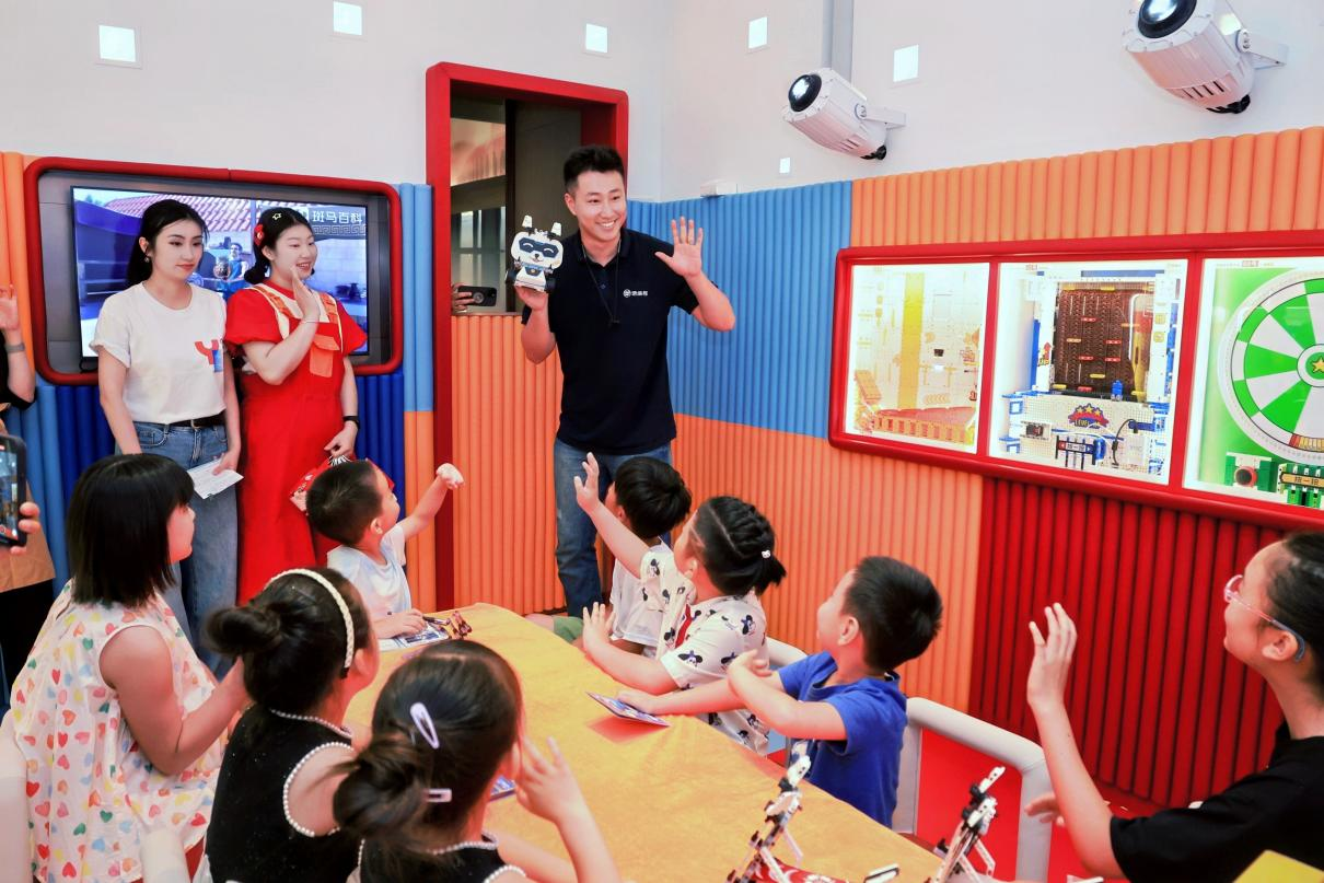 在儿童乐园中,小朋友们体验猿编程的AI教育互动项目