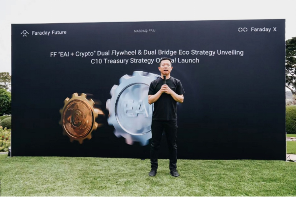 美国加州圆石滩,法拉第未来(FF)创始人贾跃亭又开了场发布会,宣布了一项比造车更“超前”的计划——“EAI+Crypto双飞轮战略”。