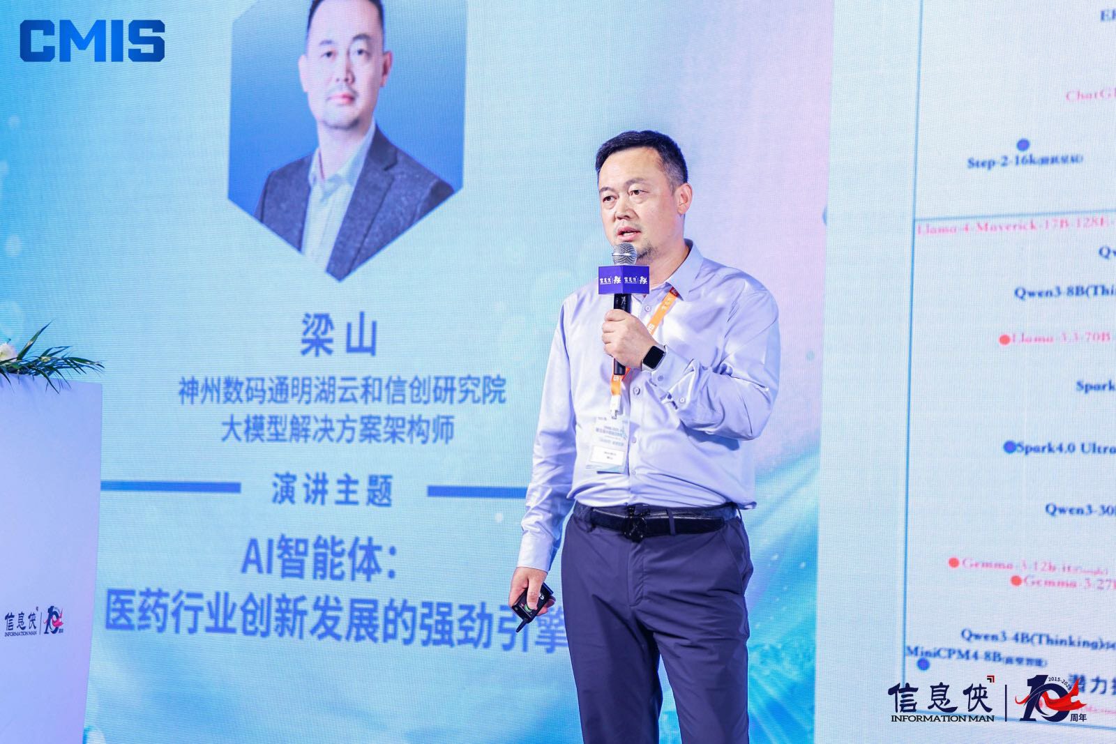 神州数码通明湖云和信创研究院大模型解决方案架构师梁山,以“AI 赋能医药高质量发展”为题,从技术趋势、企业需求与 “神州问学” 落地方案这三个方面展开深度拆解,并分享了神州数码自主研发的企业级Agent中台——神州问学在医药行业落地的最佳实践,展现了神州数码在医药行业数智化领域的深耕。