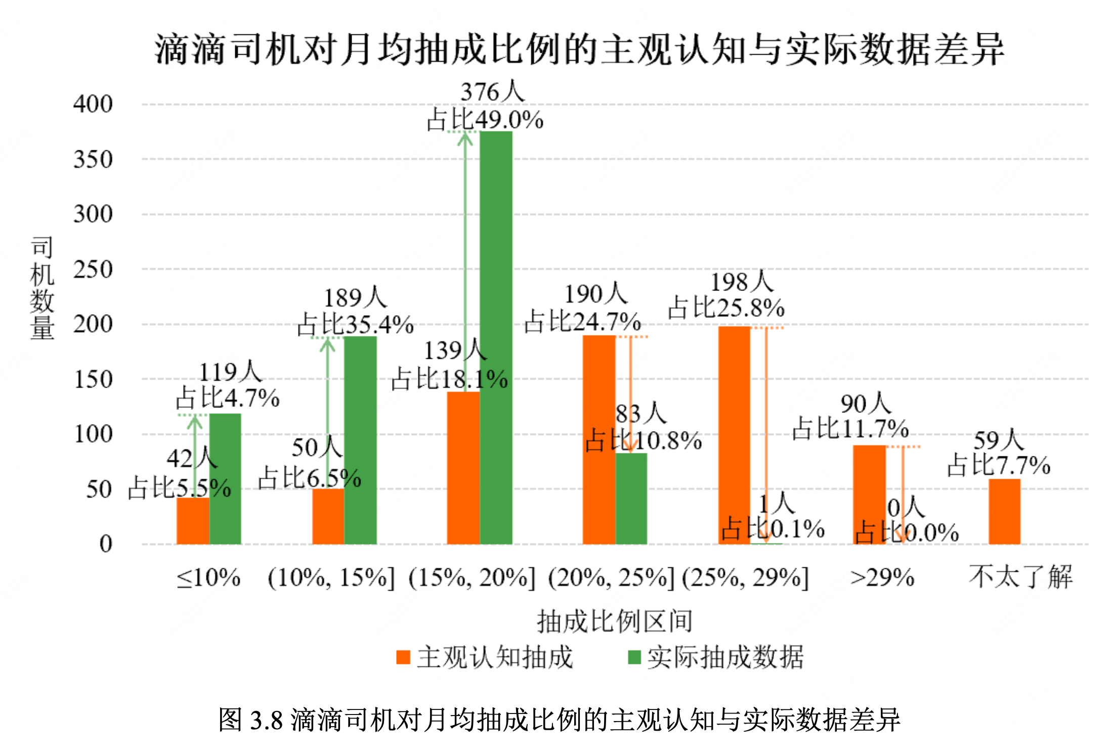 调研发现,71.8%的滴滴司机高估了抽成比例。超三分之一的司机误认为月均抽成高于25%,但以拍照留存的数据验证,768位司机中仅有1人月均抽成超过25%。