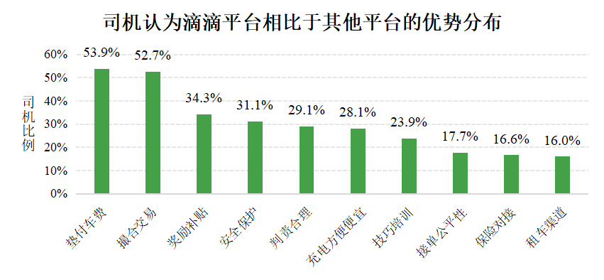 这些司机选择跑网约车的主要动因在于灵活性与收入,而滴滴平台在撮合效率、垫付机制和补贴奖励方面的优势最获认可,其次是安全、体验等方面的保障。