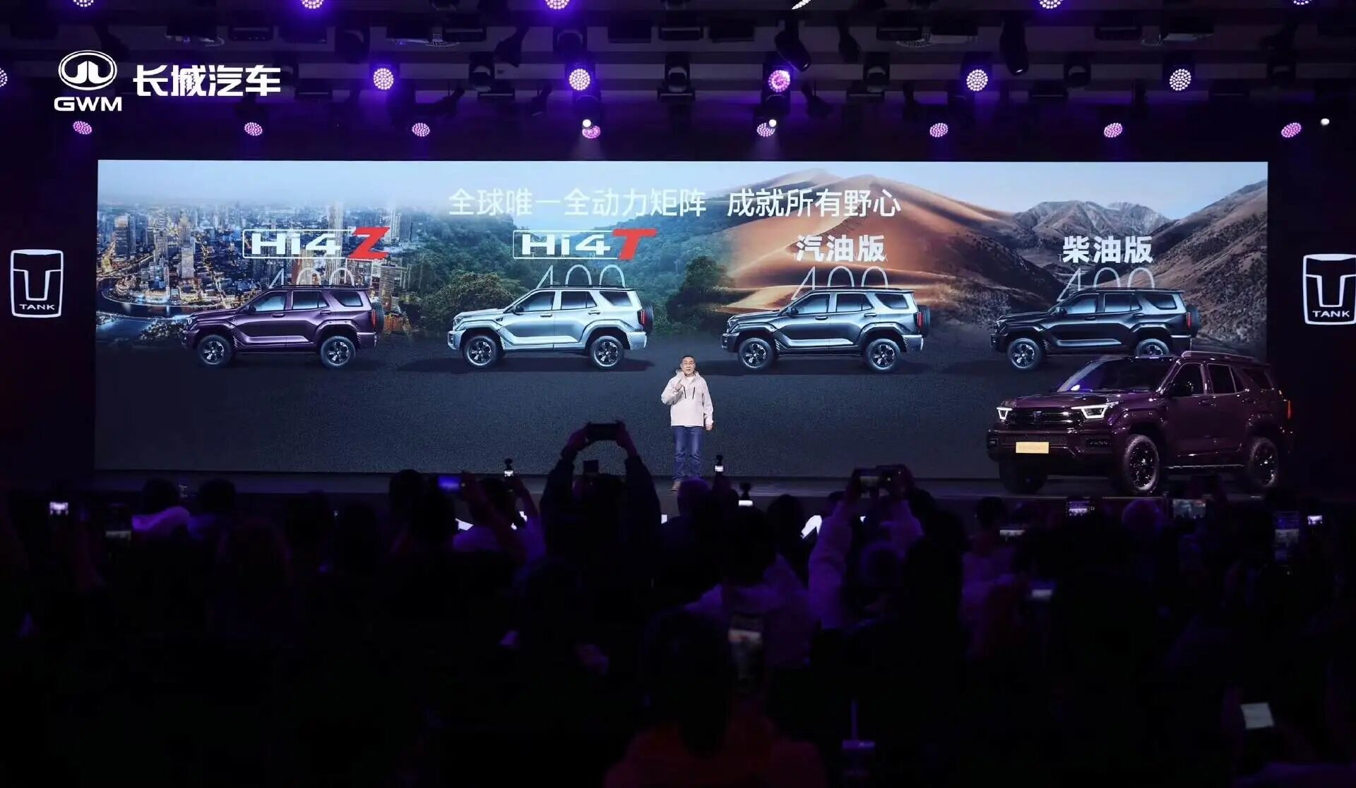 在全新坦克400上,坦克依然将选择权留给了越野玩家,根据发布会信息,坦克 400将提供四种动力。除了主推的Hi4-T和Hi4-Z动力版本,坦克还保留了传统的汽油版和柴油版。