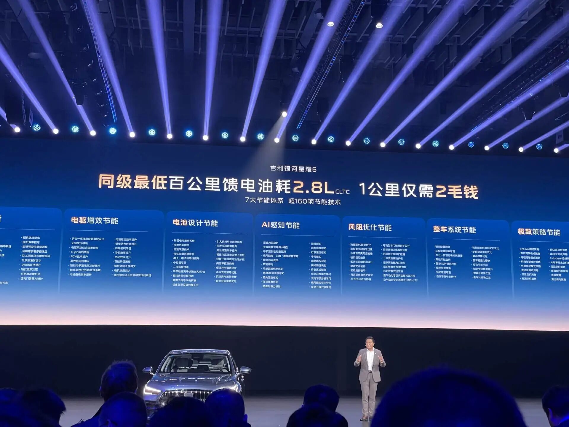 比如,让吉利银河A7拿下“全球最节能家轿”桂冠的技术——吉利雷神 AI 电混 2.0,没有意外的搭载在吉利银河星耀6上。