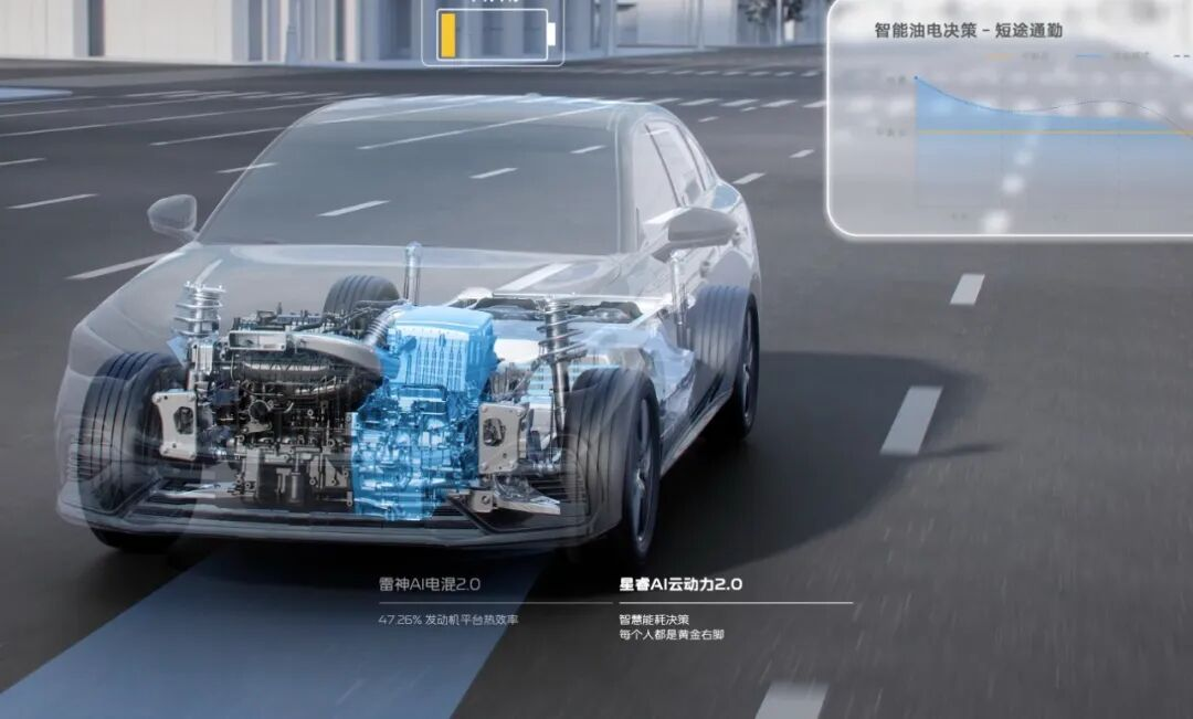 AI电混的另一方面,体现在车端动力域的控制上,其搭载了行业首个基于AI场景引擎的动力域智能体“星睿AI云动力2.0”,也是让等效热效率达到47.26%的关键。