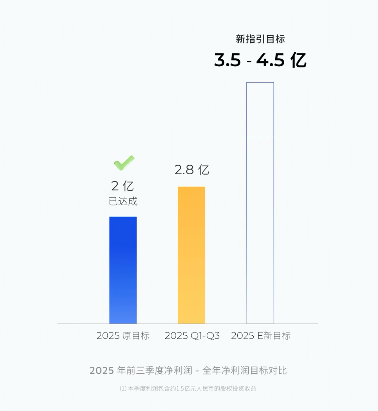 第三季度,禾赛斩获前两大 ADAS 客户 2026 年全系车型定点合作,并实现 100% 标配。同时,禾赛 ETX+FTX 产品组合斩获首个乘用车量产定点,以“主雷达+多颗补盲雷达”的配置实现全域感知覆盖,计划于 2026 年底或 2027 年初启动量产。在机器人领域,禾赛接连拿下 Motional 及多家北美、亚洲、欧洲全球领先自动驾驶企业的激光雷达订单。接下来,禾赛将继续保持强劲的增长势头,并将全年公认会计准则下的净利润指引上调至 3.5 亿元至 4.5 亿元人民币。