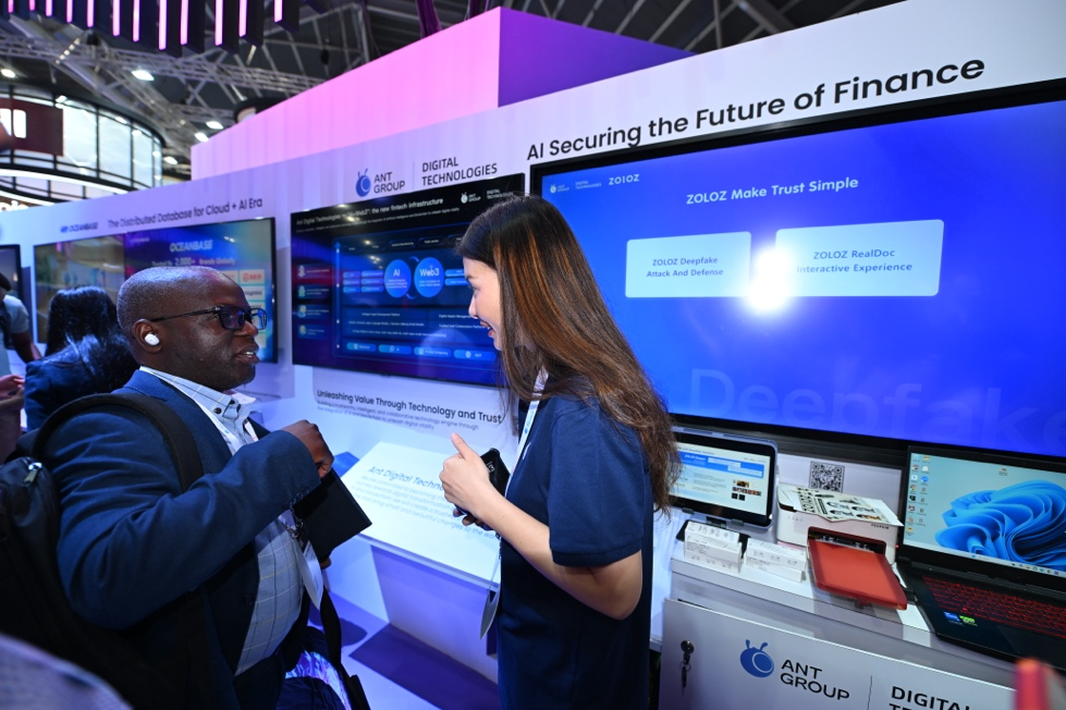 据悉,蚂蚁数科此次展出的的全栈企业级AI服务,集成了大模型智能体、知识工程、数据治理与全链路风控等全栈AI能力,助力全球金融机构及企业在AI时代加速业务增长、革新用户体验、提升风控水位。