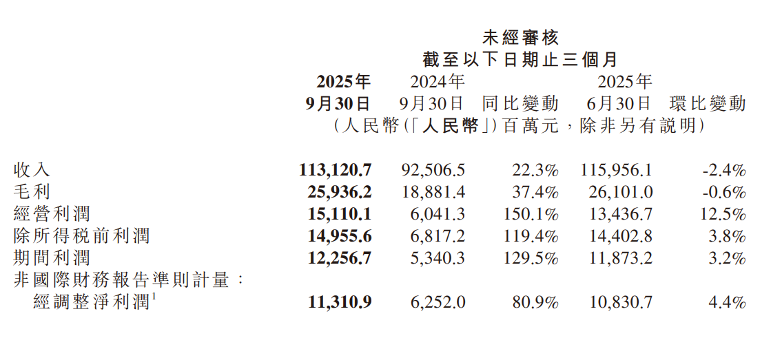 值得注意的是,2025年第三季度,小米的智能电动汽车及AI等创新业务分部首次实现单季度经营盈利,本季度经营收益为7亿元。