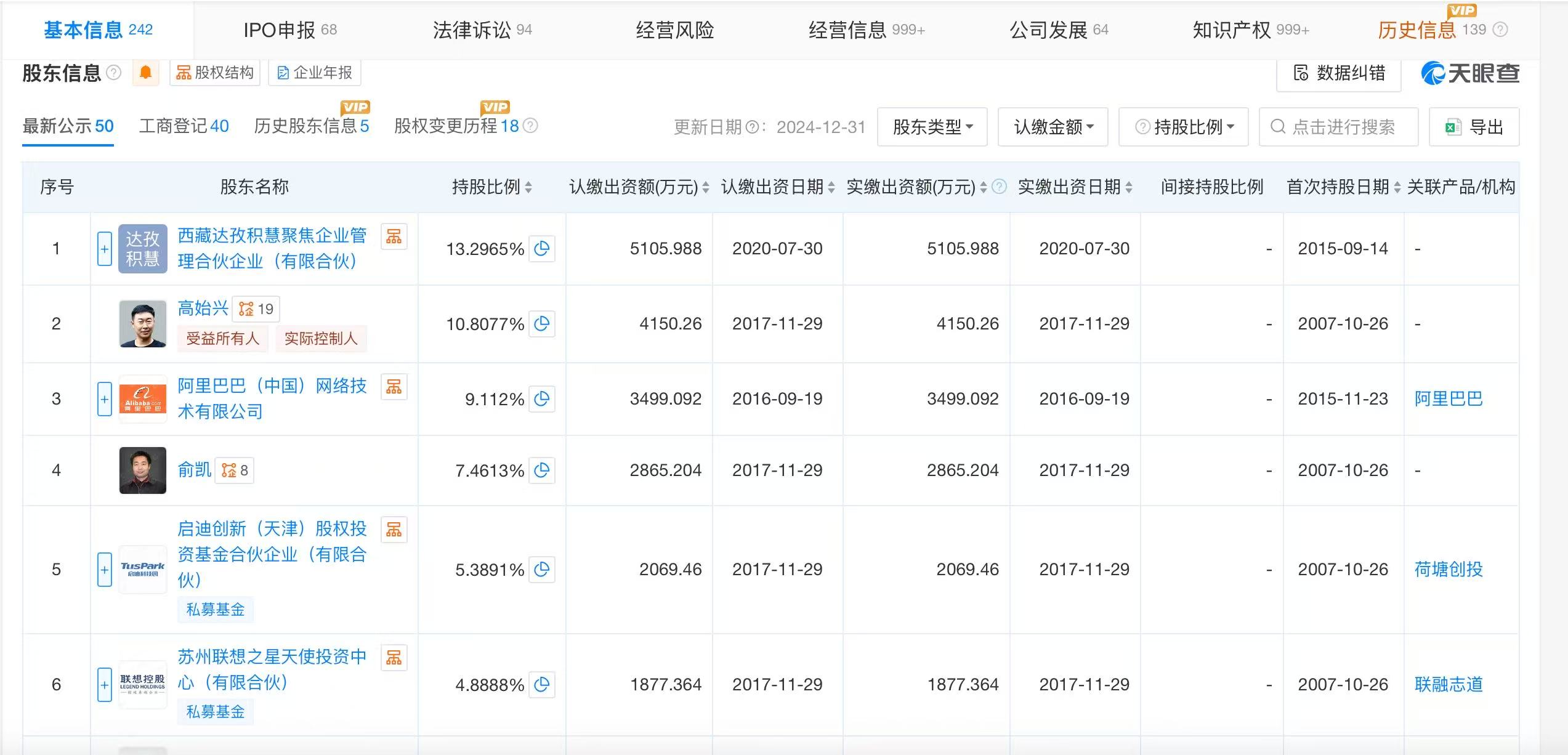 14年14轮融资近20亿,阿里持股9.11%系第一大外部股东