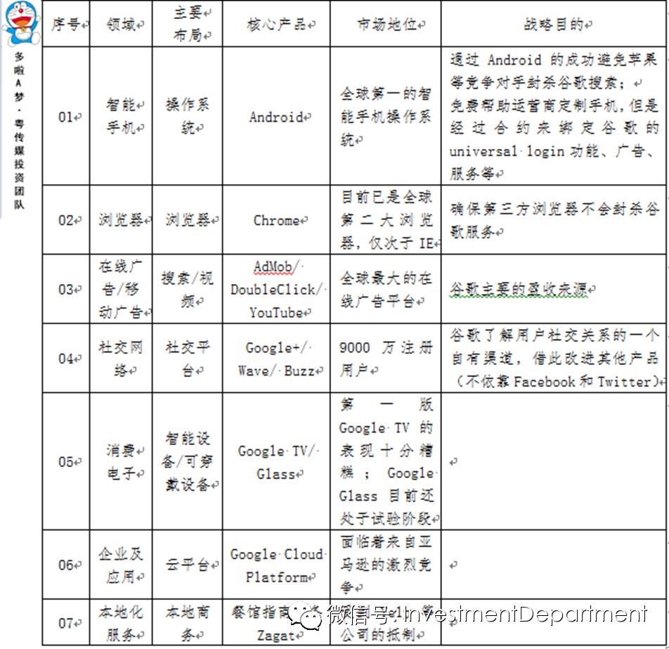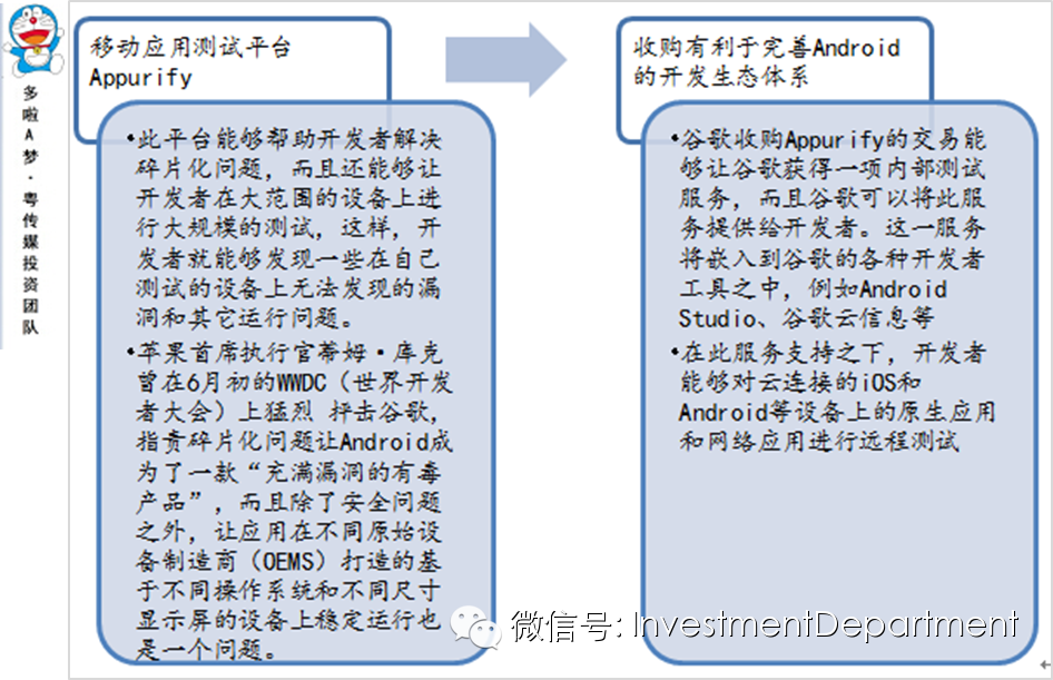 本文所有数据、案例都来自第一手资料收集,其中不仅包括谷歌2014年所有的投资并购项目,还有高通、微软、亚马逊、因特尔2014年的所有投资并购项目,因篇幅所限,文中仅列出谷歌2014年的并购项目分析,其它项目列表,请关注微信号“上市公司投资部”并与作者联系索要。