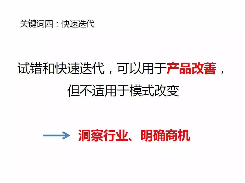 No.4 试错和快速迭代,可以用于产品改善,但不适用于模式改变